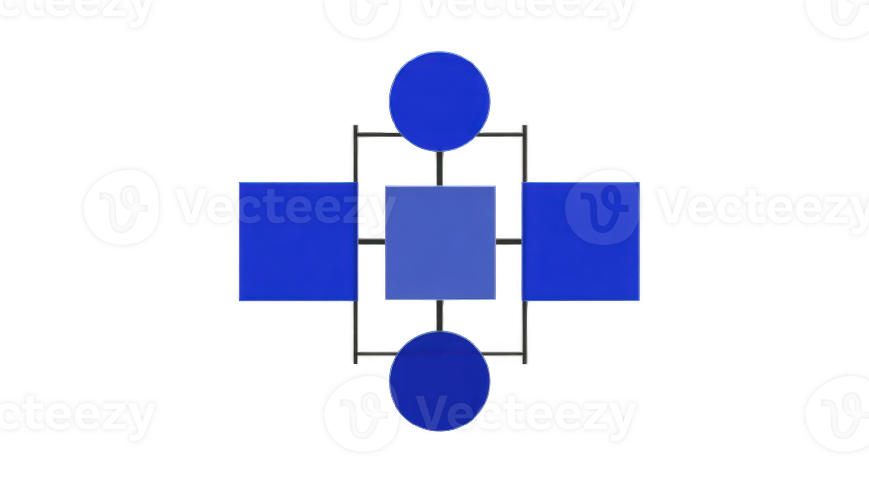 Geometric abstract composition featuring two blue circles and three blue squares arranged symmetrically on transparency background, creating modern and balanced visual effect Pro PNG