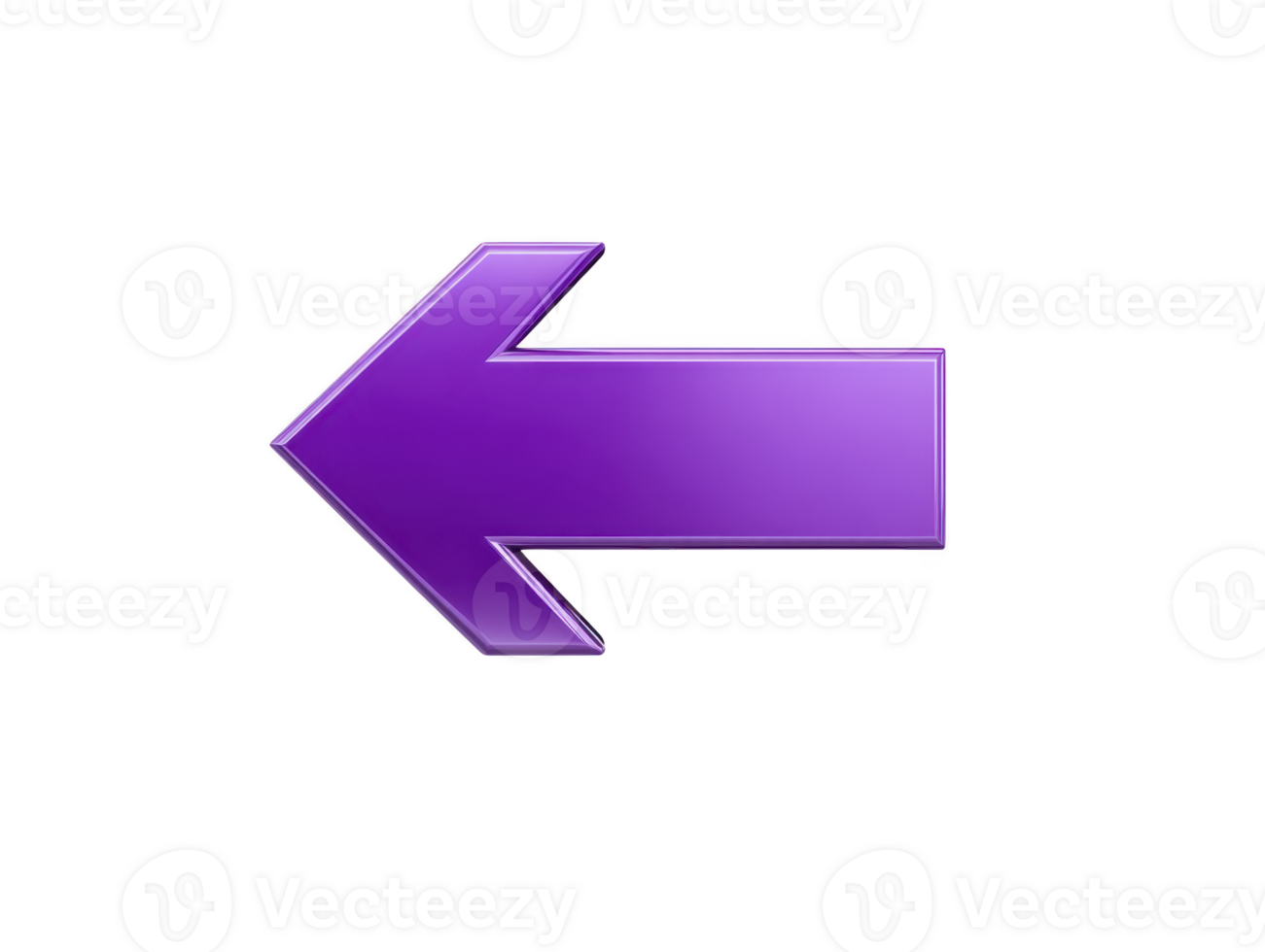 Purple left arrow glossy style isolated on transparent background used for navigation direction or interface design modern and vibrant suitable for web or app icons Pro PNG