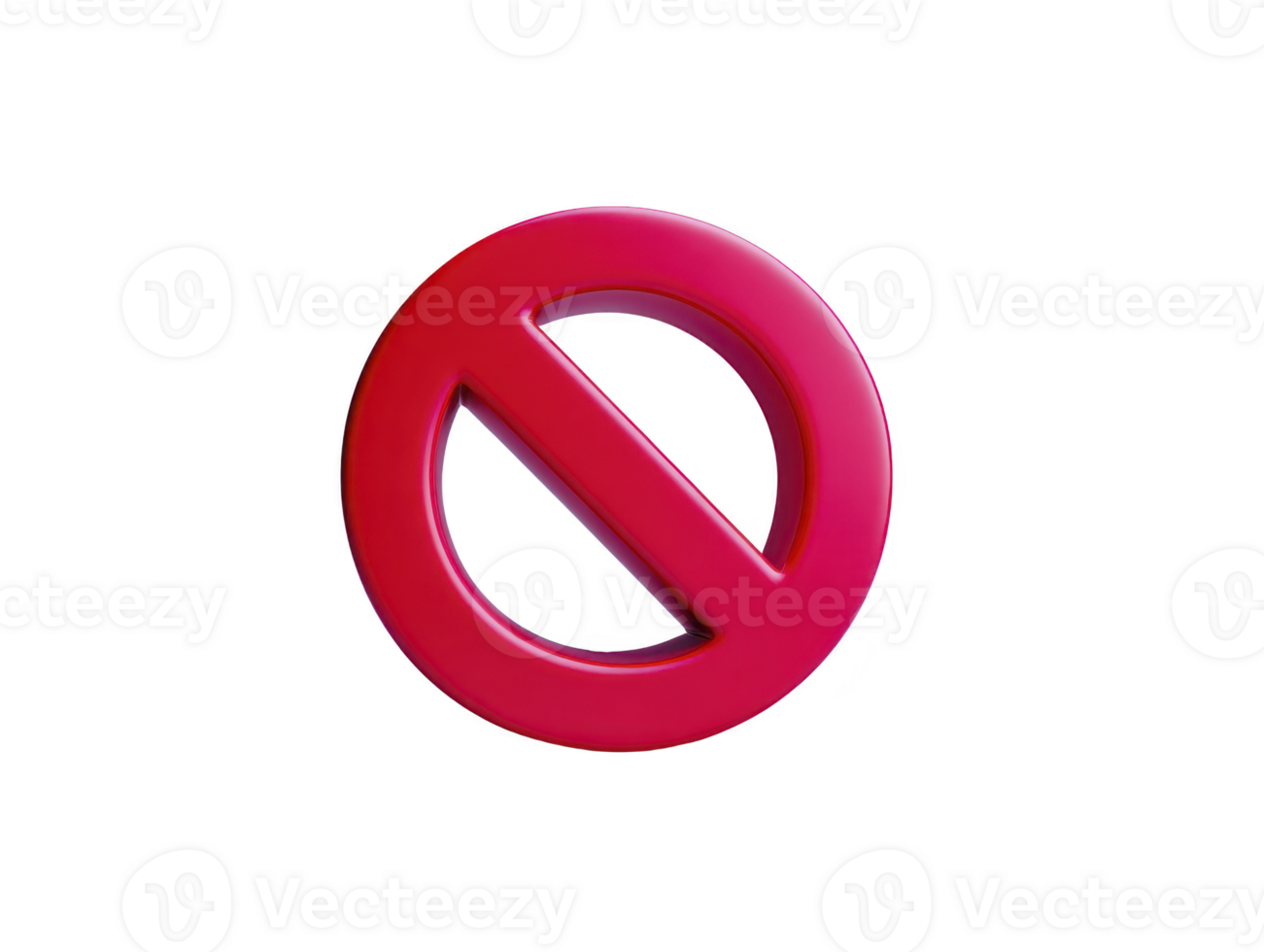 Red prohibition sign, circular symbol with diagonal line, isolated transparent background, used for warning, restriction, or forbidden concepts, conveying clear message of no entry or not allowed Pro PNG