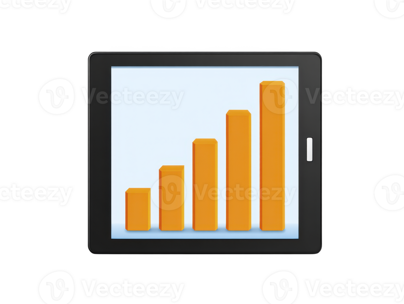 Bar chart growth progress data and analysis are shown on digital tablet screen representing business success financial increase and positive performance in modern minimal style Pro PNG