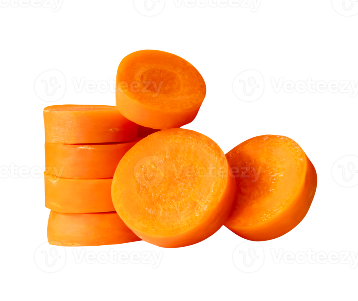 Many orange carrot slices in stack isolated with clipping path in file format Pro PNG