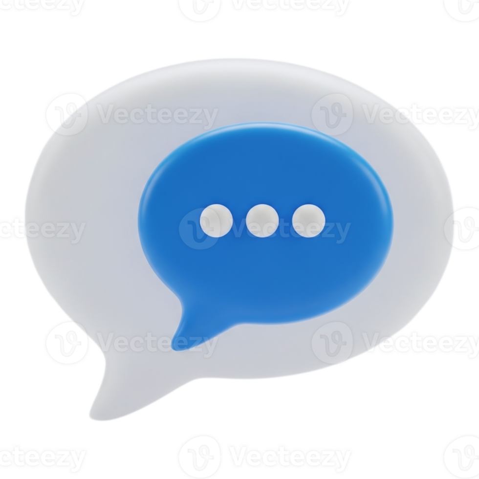 A 3d icon of a speech bubble with three dots inside, representing conversation isolated on transparent background Pro PNG