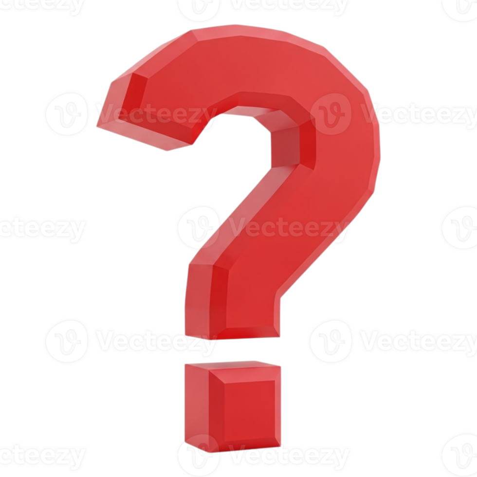 A bold, red, 3d question mark symbol with sharp edges, isolated on a transparent background, representing inquiry Pro PNG