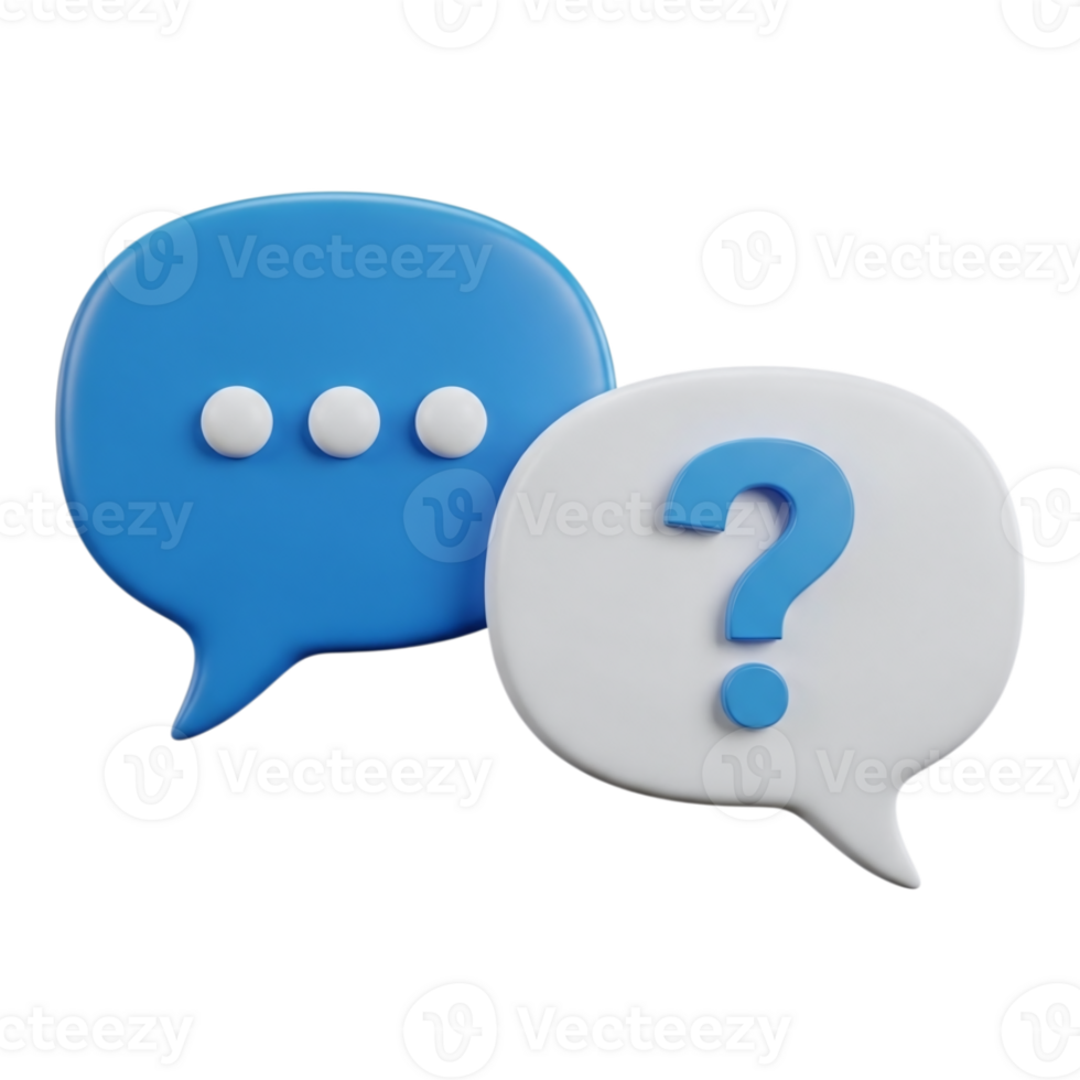 Two 3d speech bubbles, one with ellipses and one with a question mark, isolated on transparent background Pro PNG