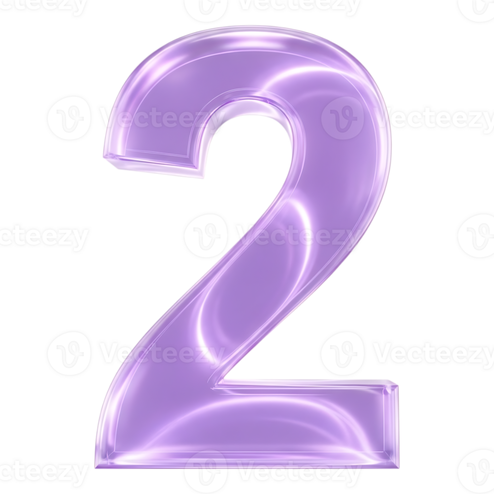 A glossy purple number 2 isolated on a transparent background, representing quantity or a second item in a sequence Pro PNG