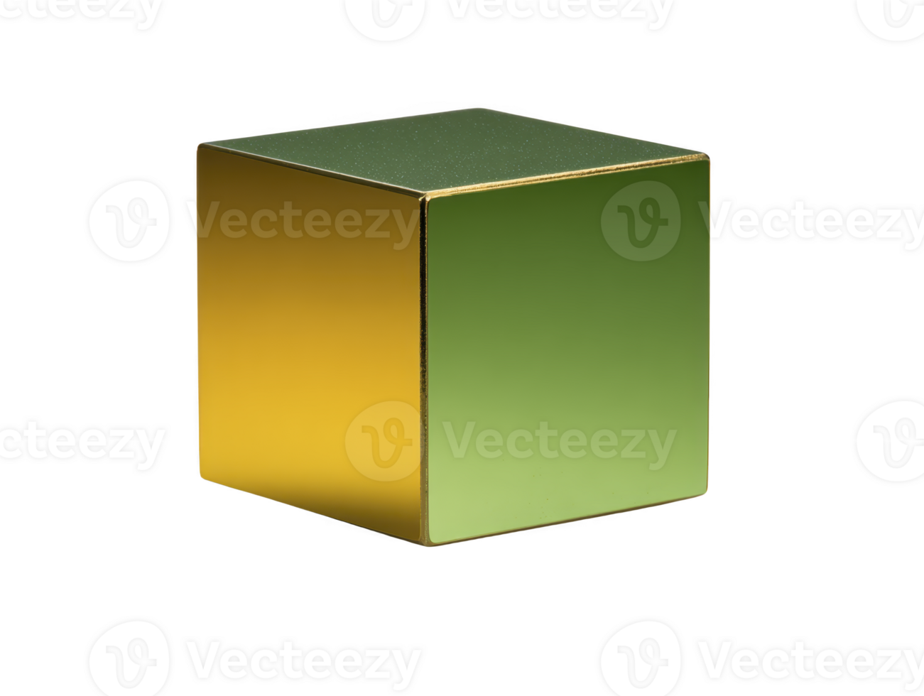 Golden green metallic cube, isolated on transparency background, features smooth reflective surfaces and sharp edges, modern geometric shape, minimalistic and elegant design Pro PNG