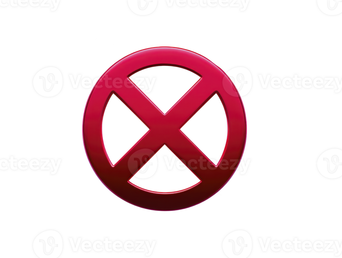 Red circle with cross symbol, glossy finish, isolated on transparent background, often used for prohibition, error, or cancel concepts in digital interfaces Pro PNG
