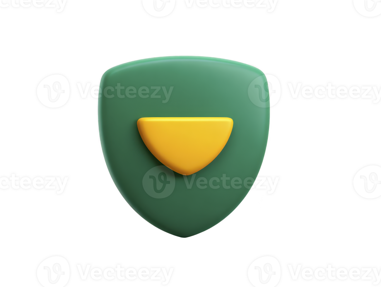Green shield icon with yellow emblem symbolizing security protection and safety isolated on transparency background 3D rendering modern minimal style suitable for cybersecurity or privacy concepts Pro PNG