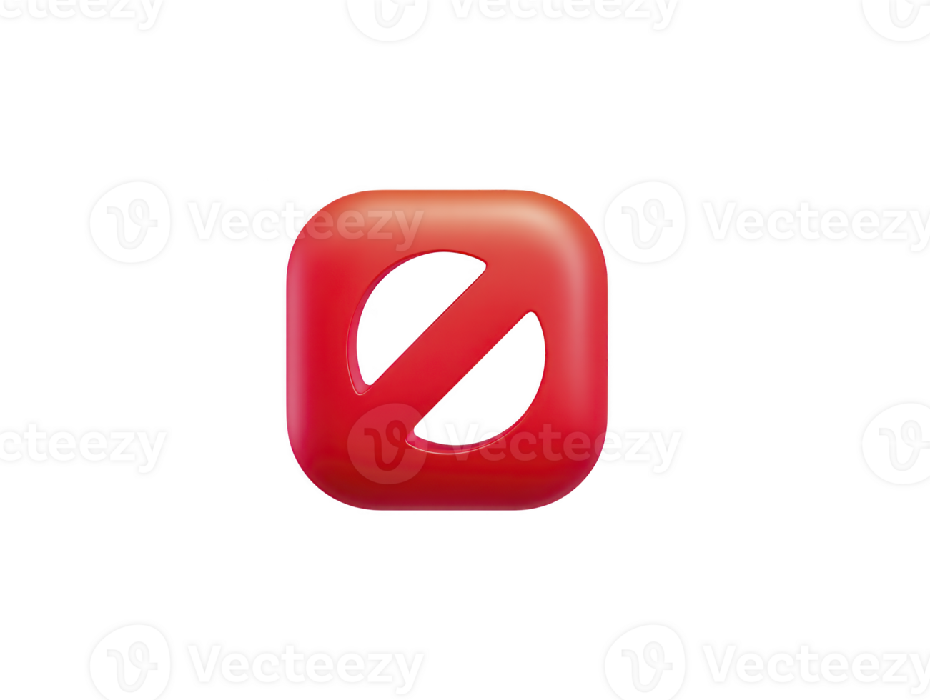 Red 3D prohibition symbol, glossy style, isolated on transparent background, commonly used for restriction, warning, or forbidden concepts in digital design Pro PNG