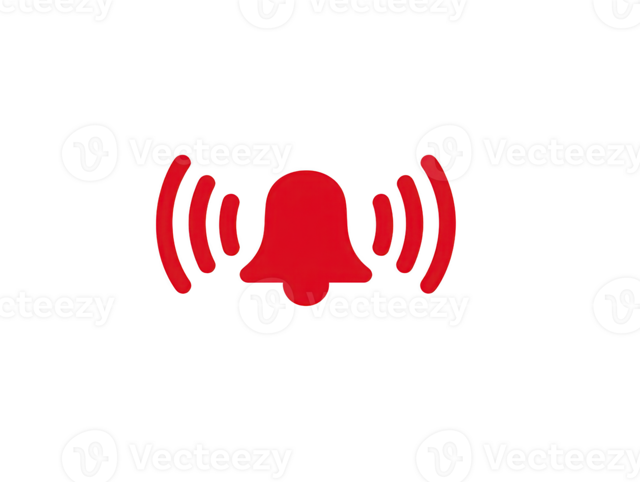 Red bell icon with sound waves, symbolizing alert notification, warning, or alarm, commonly used in digital interfaces for urgent messages or reminders Pro PNG