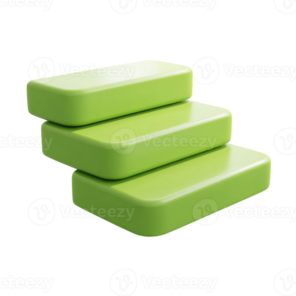 Stack of three green rectangles, 3D rendered shape on transparent background Pro PNG