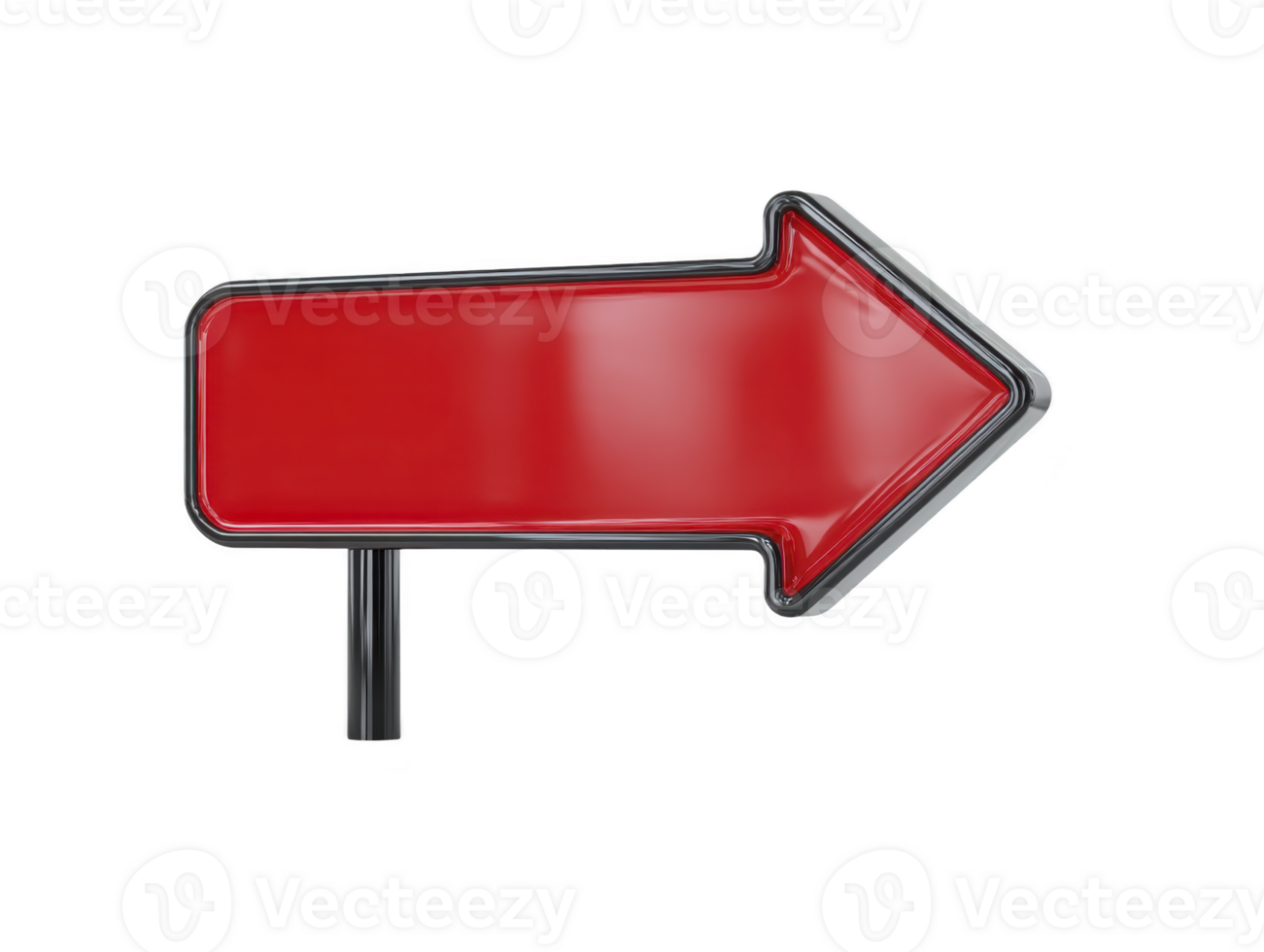 Red arrow sign with glossy surface and black outline pointing left, isolated on transparent background, suitable for direction, navigation, or guidance concepts Pro PNG