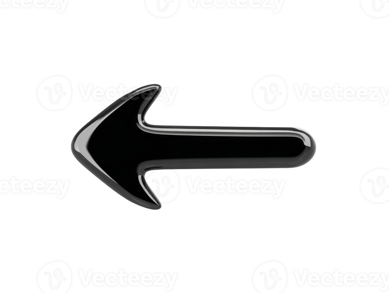 Black left arrow icon with glossy finish, isolated on transparent background, ideal for web navigation, user interface, direction, or digital design projects Pro PNG