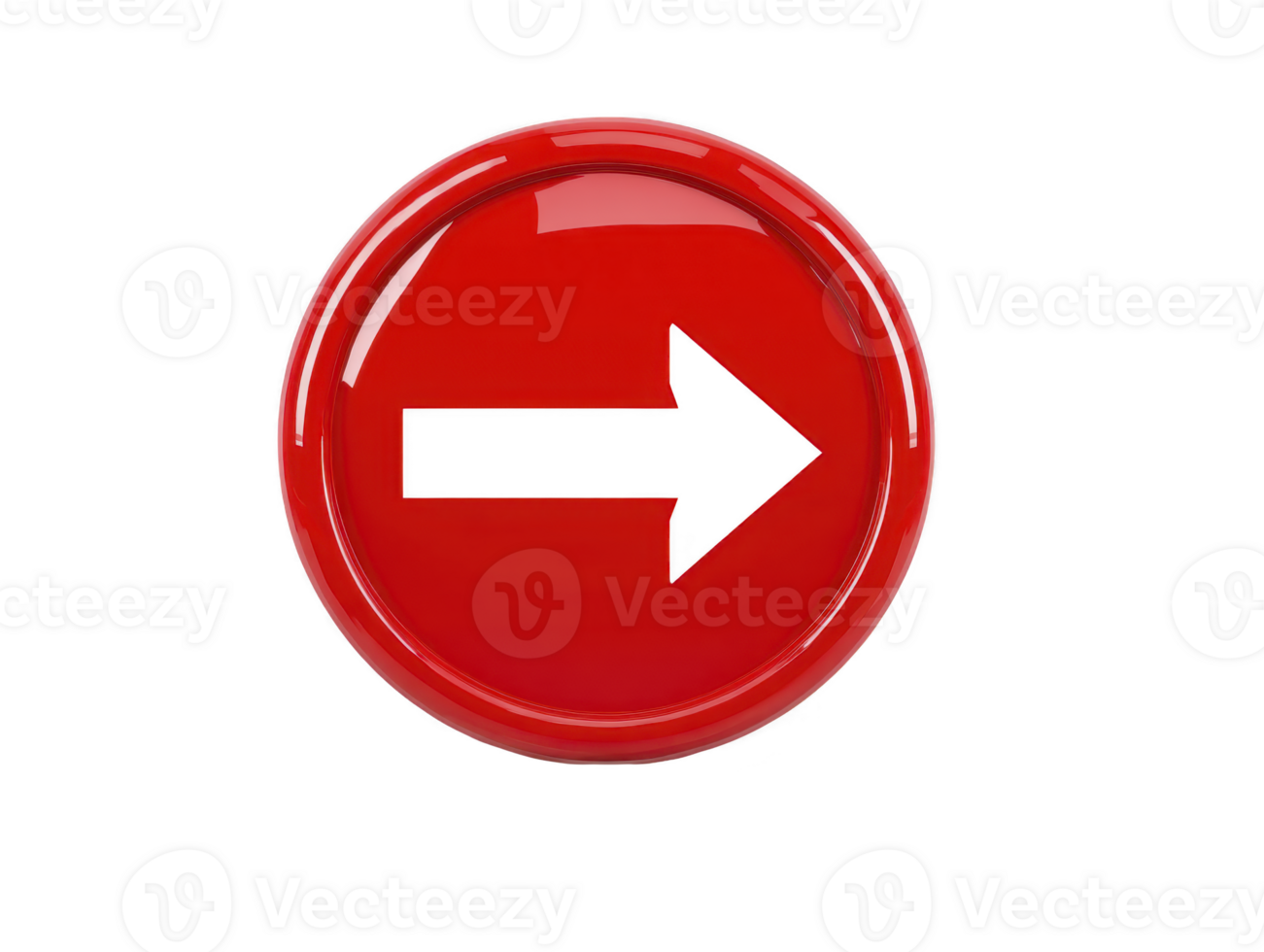 Red round button with glossy surface and black right arrow symbol, isolated on transparent background, used for navigation, direction, or interface design, conveying modern and dynamic feel Pro PNG