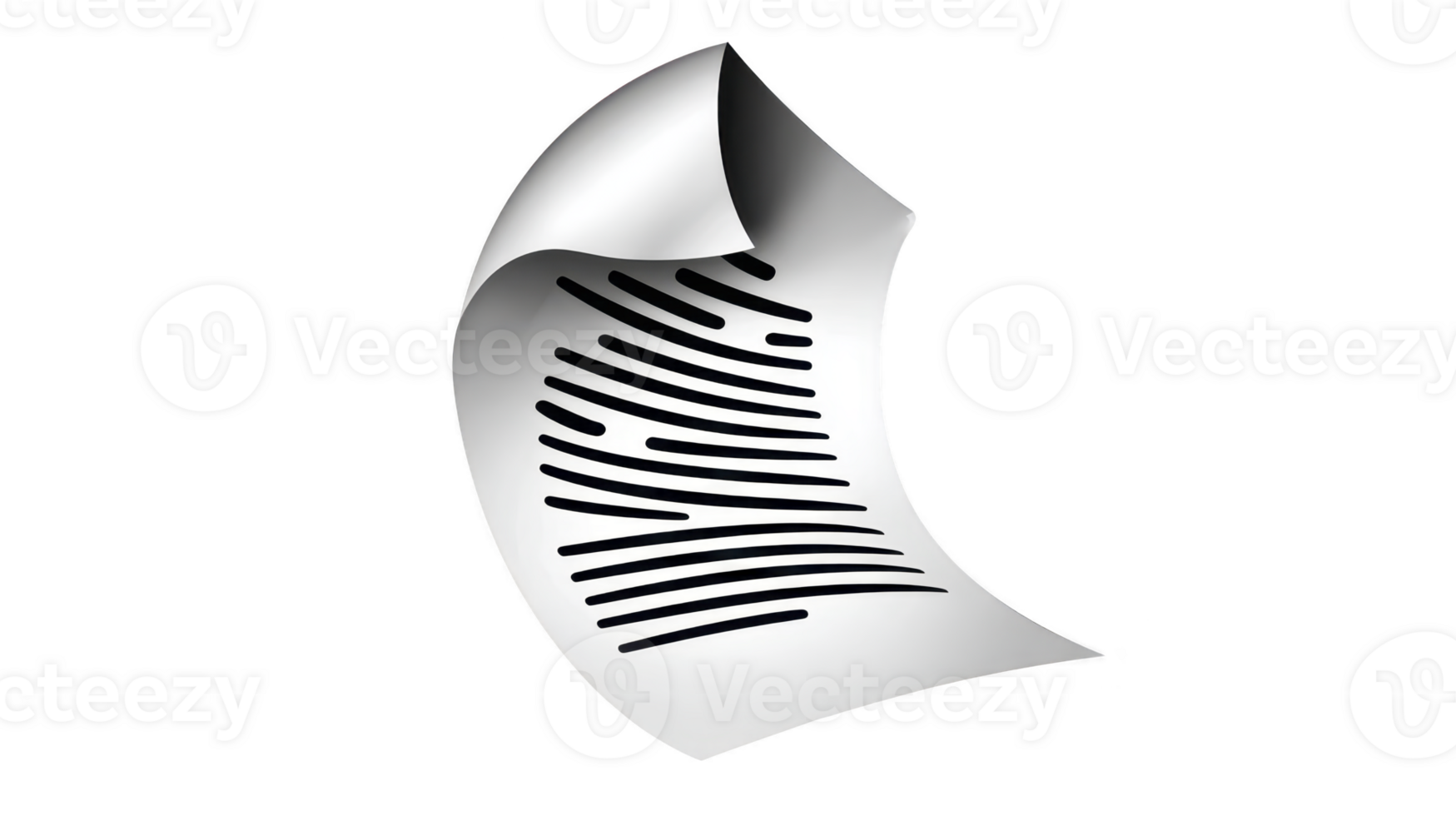 Curled paper document sheet white isolated blank page office stationery curve single background floating realistic empty design template mockup smooth modern clean minimal business concept Pro PNG