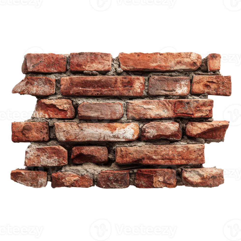 Rustic red bricks are stacked tightly to create a textured wall with visible imperfections and variations in color. Pro PNG