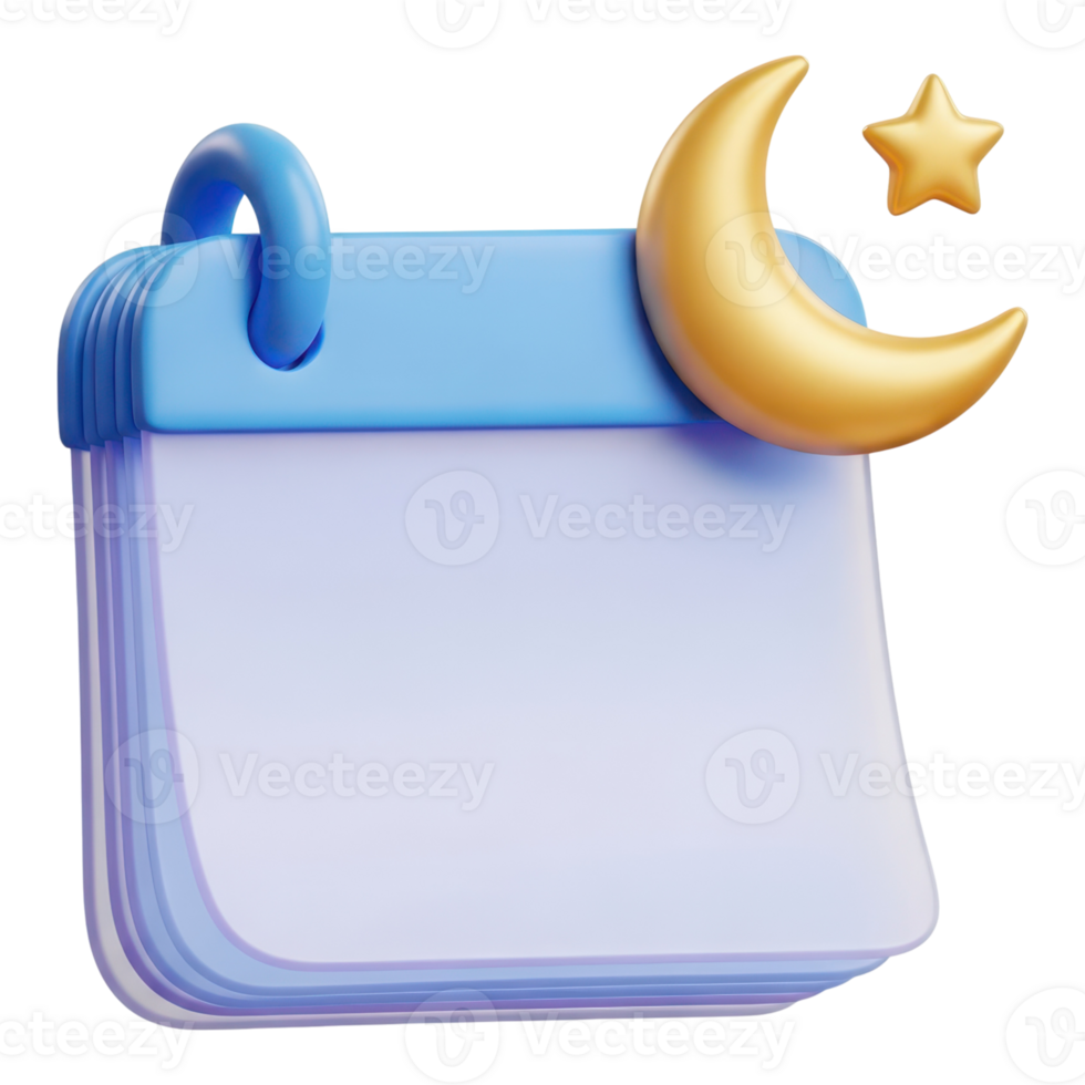 3d rendering of a calendar with a moon and star isolated on transparent background Pro PNG