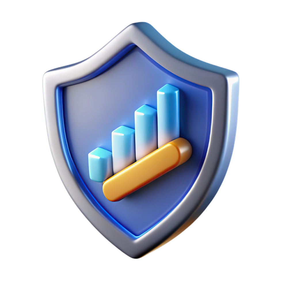 3d icon of a shield with a rising bar graph inside, symbolizing security and financial growth, isolated on transparent background Free PNG