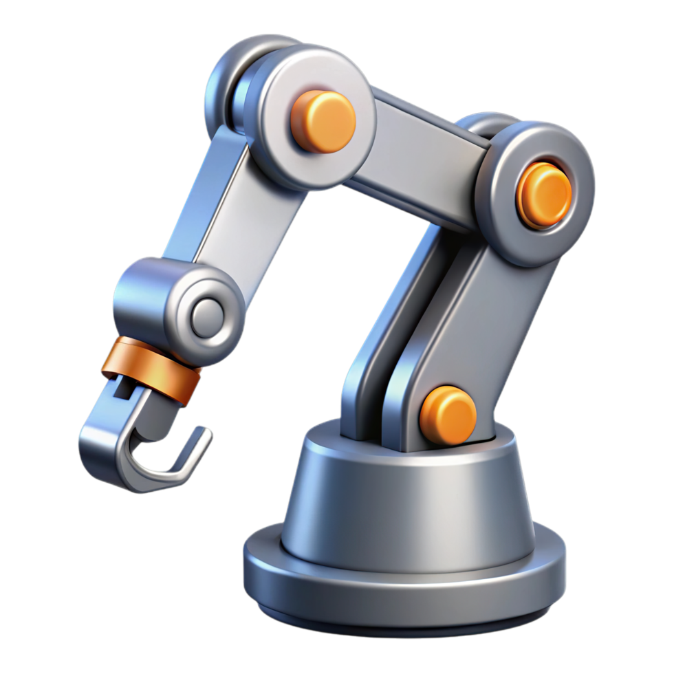 Illustration of a 3d render of a robotic arm with a hook, isolated on transparent background, showcasing industrial automation and precision engineering png