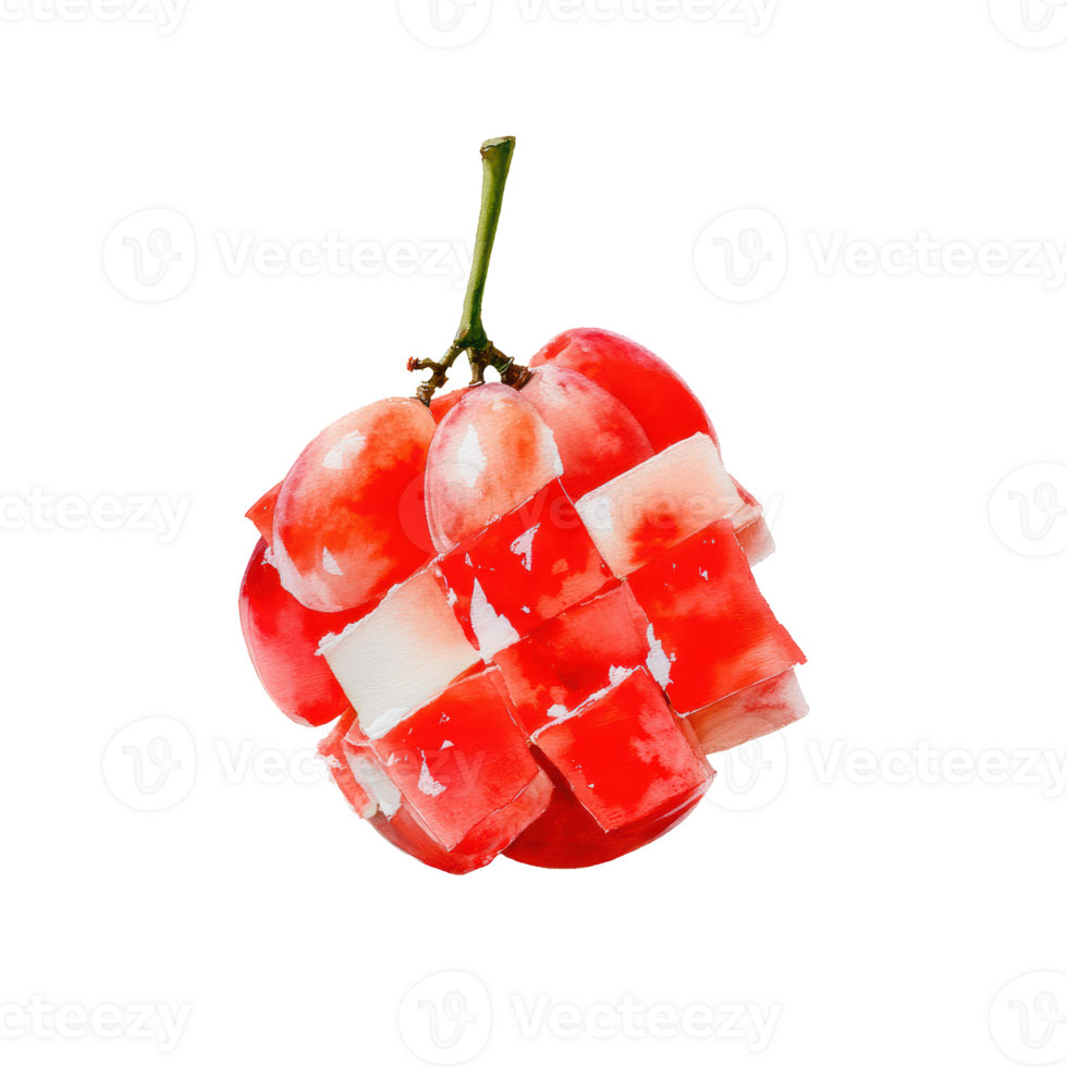 Watercolor red grapes with a unique fragmented, cubelike texture, creating an abstract and modern visual effect, isolated on transparent background Pro PNG