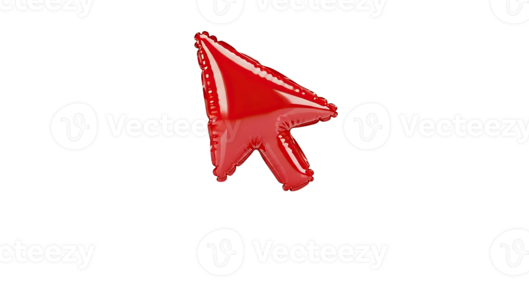 Shiny red cursor balloon floating in a transparent background symbolizing online navigation and digital interaction with a playful and modern feel Pro PNG