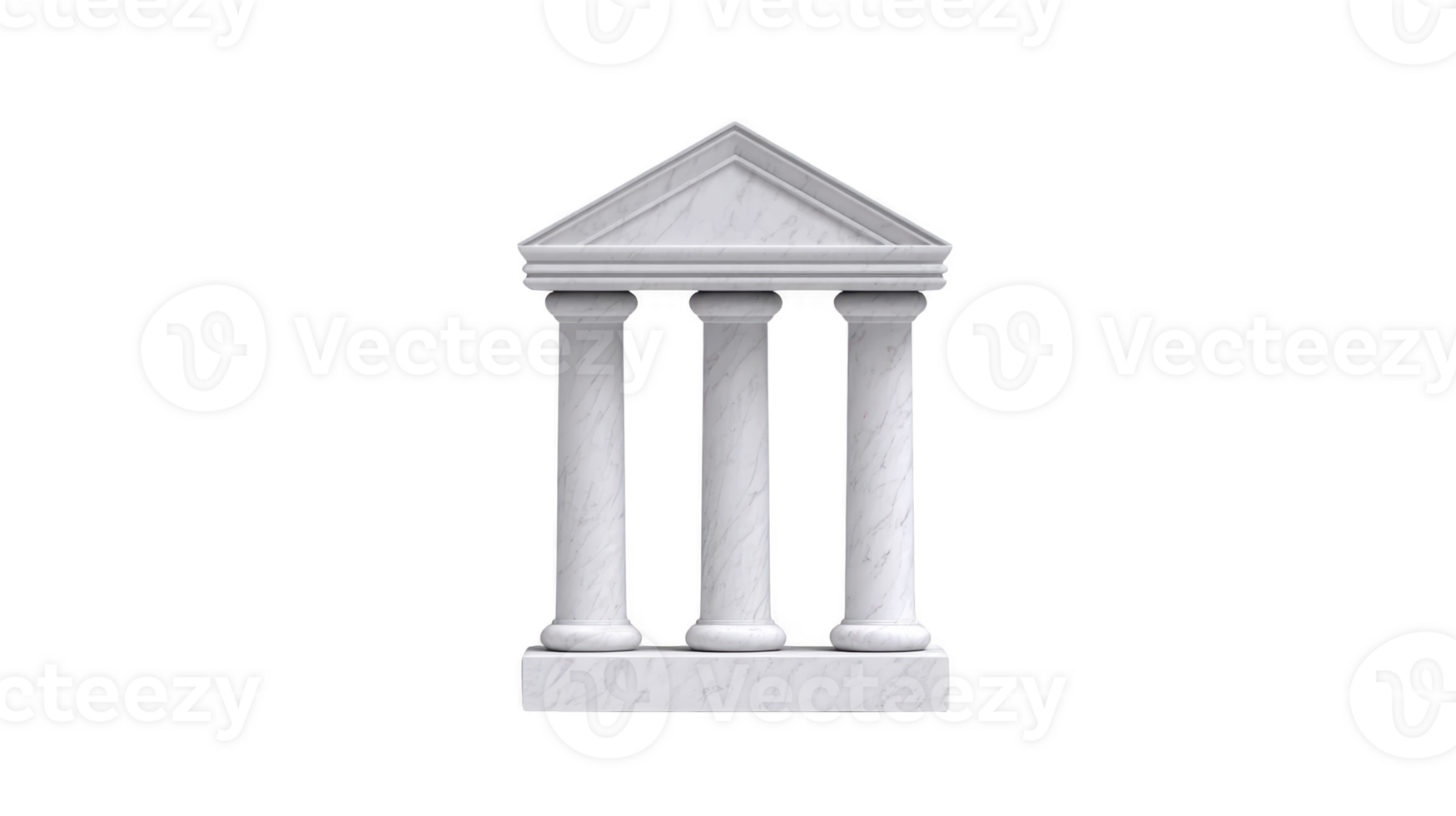 Classical marble building with three columns and triangular pediment, symbolizing ancient architecture, tradition, and stability, often used for government or financial institutions Pro PNG