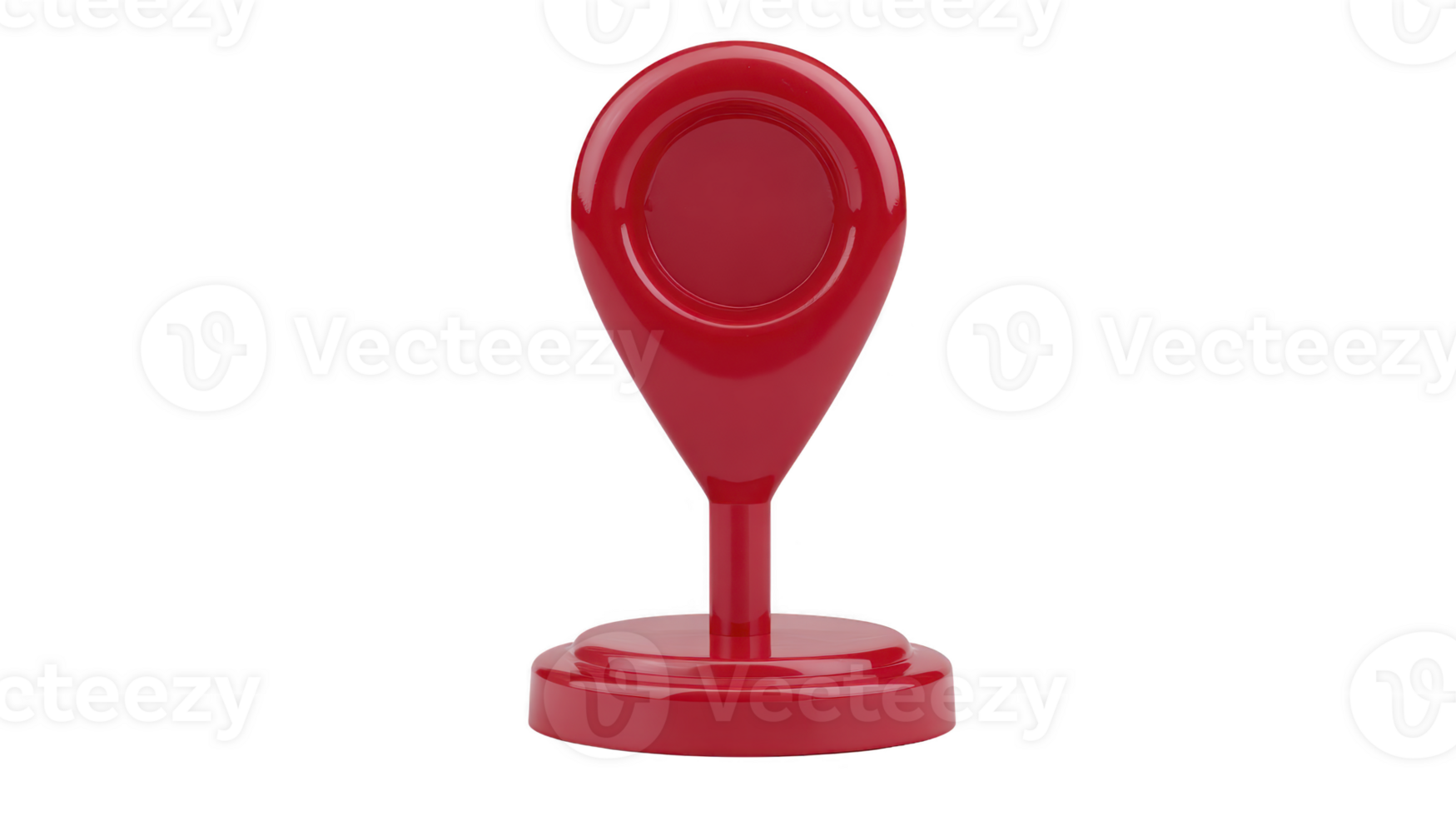 Red location pin marker on stand, glossy finish, isolated on transparency background, symbolizing navigation, direction, and travel with modern, minimalistic design Pro PNG