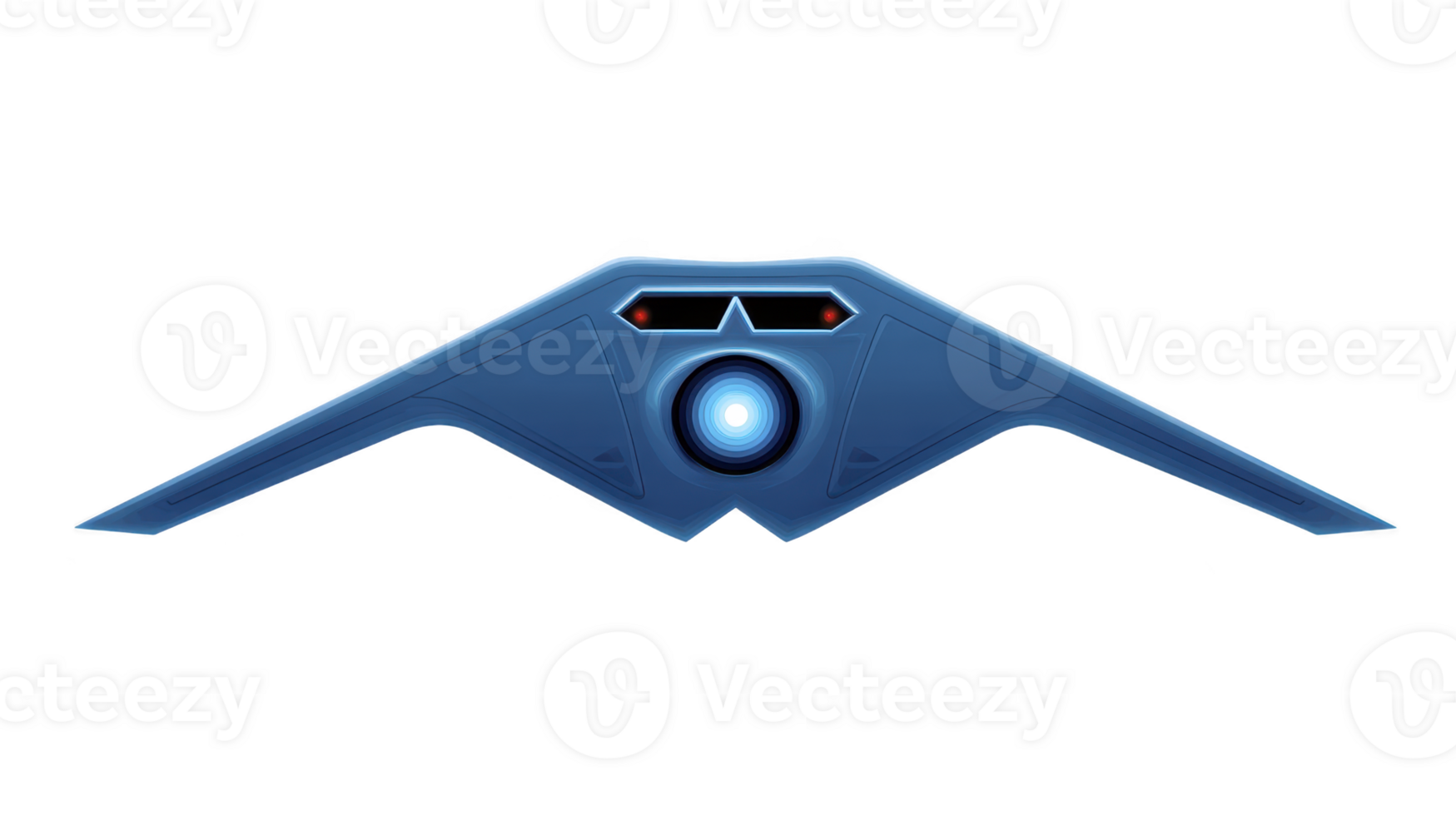 Futuristic blue drone with glowing central light, angular wings, and sleek design, evokes advanced technology and innovation, suitable for sci fi or robotics concepts Pro PNG