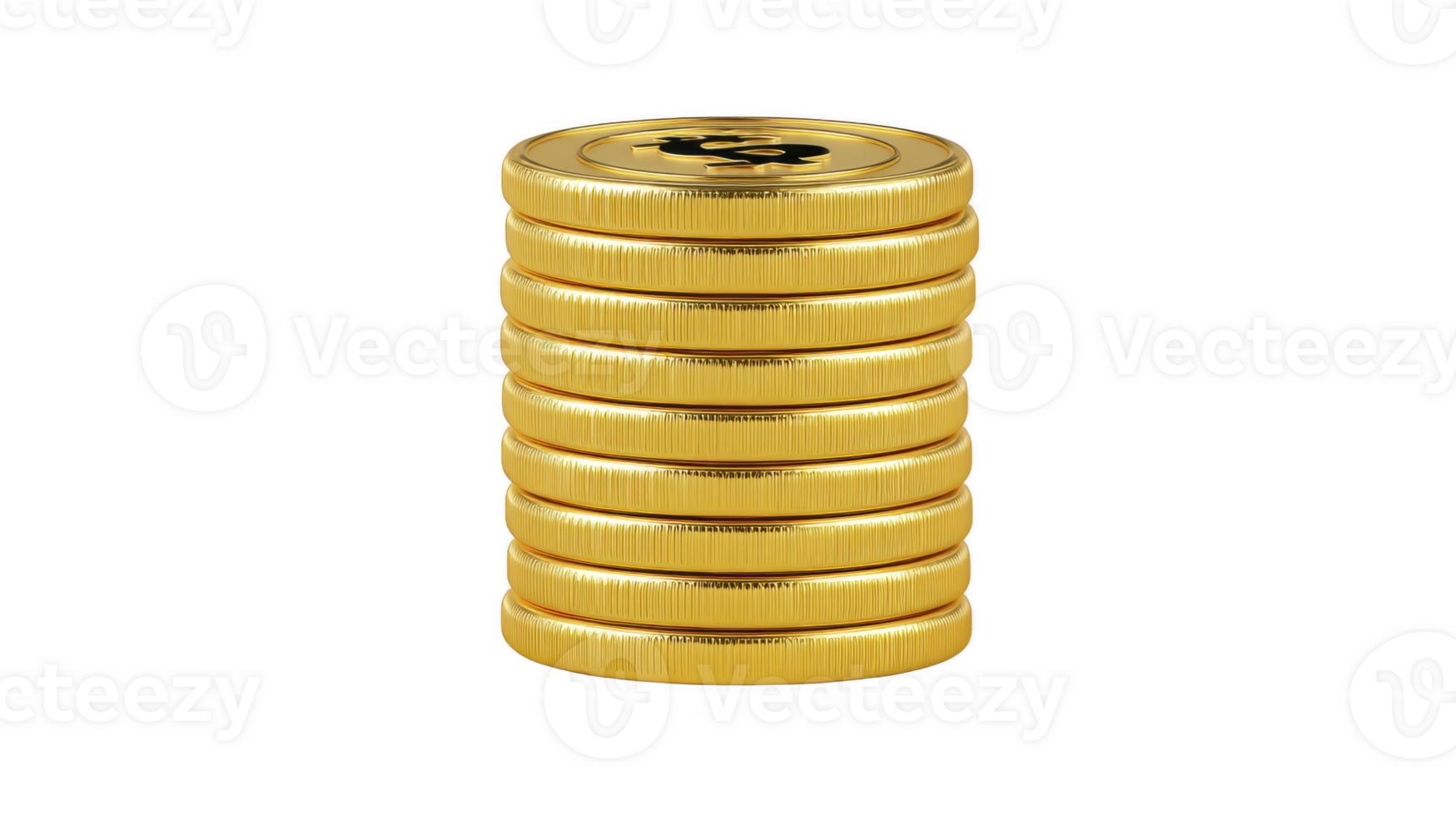 Stack of shiny gold coins with embossed bitcoin symbol, isolated on transparency background, representing digital currency, wealth, and financial investment concepts Pro PNG