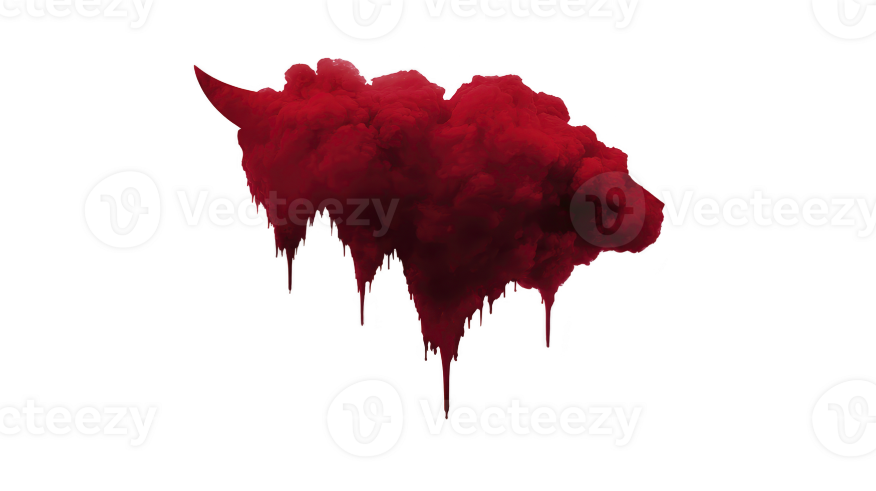 Red smoke forms shape of buffalo head with dramatic, artistic drips, creating surreal and powerful visual effect on transparent background Pro PNG