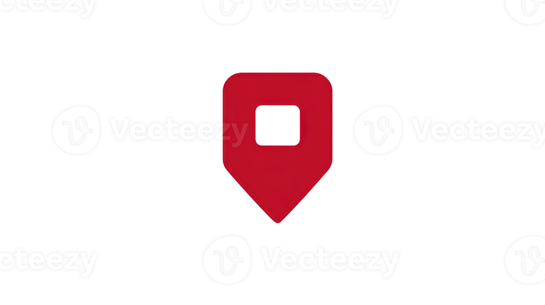 Red location pin icon, simple geometric design with square cutout in center, isolated on transparent background, symbolizing navigation, direction, or map marker Pro PNG