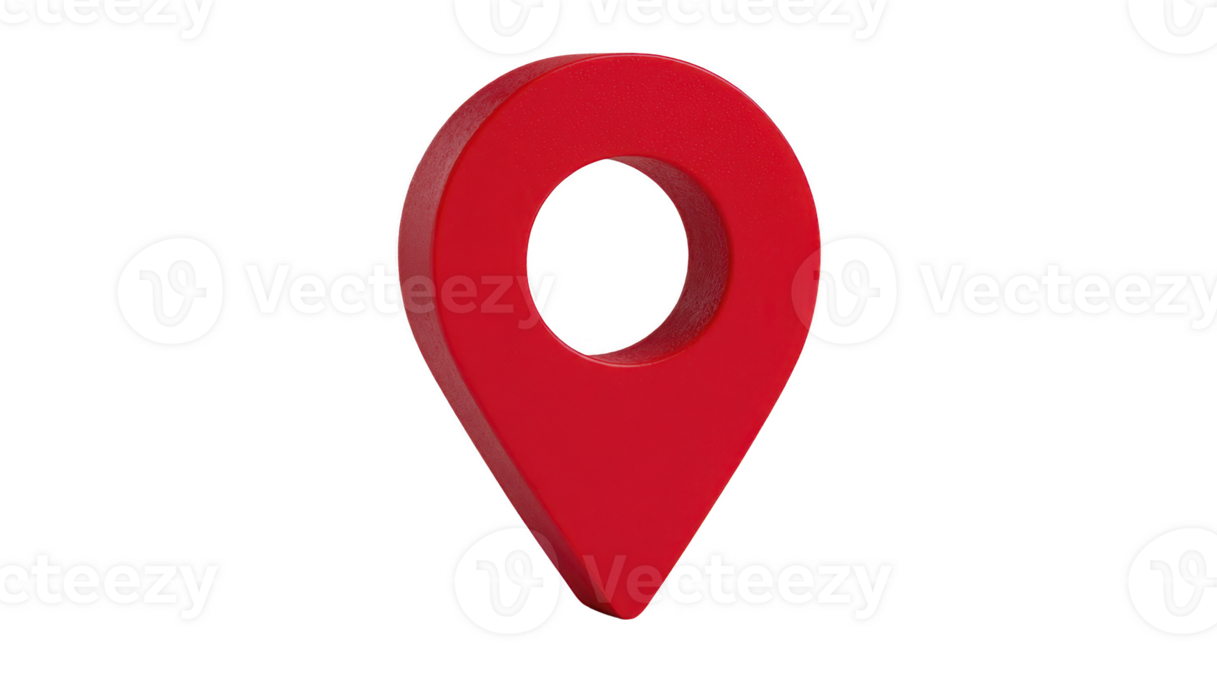 Red location pin navigation marker isolated on transparency background symbolizing map point travel direction and destination often used in digital maps and GPS applications Pro PNG