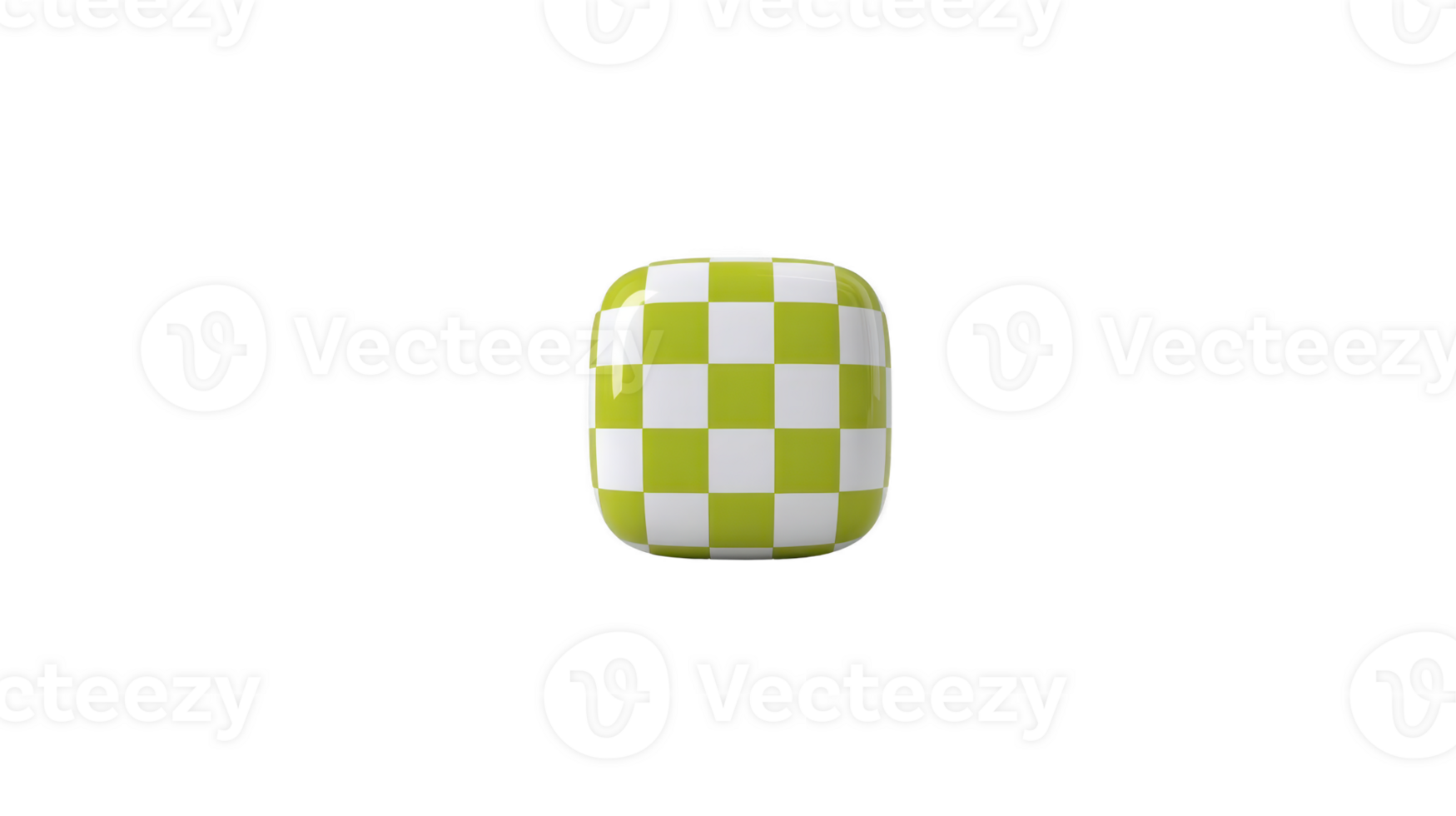 Green white checkered square, glossy 3D object, isolated on transparent background, modern minimal style, playful geometric design, suitable for digital art or game asset Pro PNG