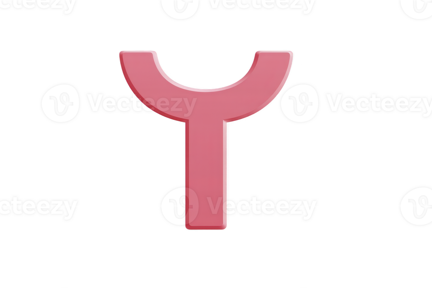 Red uppercase letter upsilon symbol, 3D rendering, isolated on transparent background, modern style, educational and decorative, suitable for learning material or graphic design projects Pro PNG