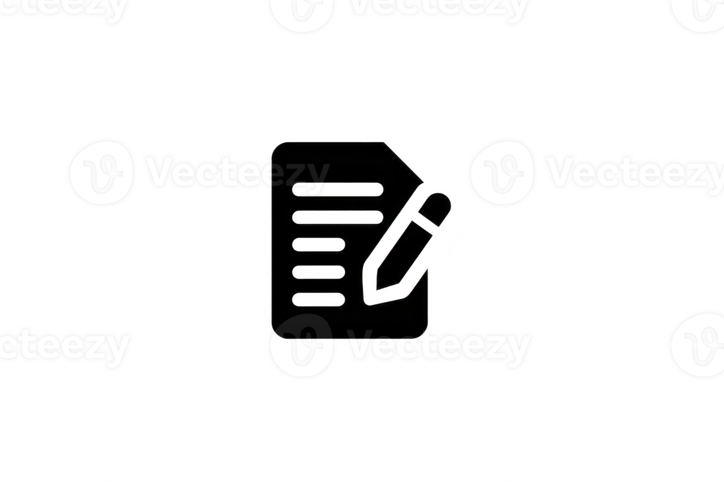Document icon black paper with lines and pencil symbolizes writing editing note taking or creating content suitable for office education or digital application concepts Pro PNG