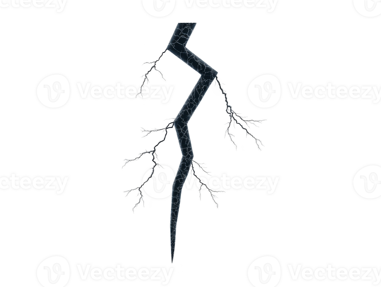 Cracked lightning bolt with branching veins, transparency background, symbolizing energy, power, and electricity, with dramatic and intense visual effect Pro PNG