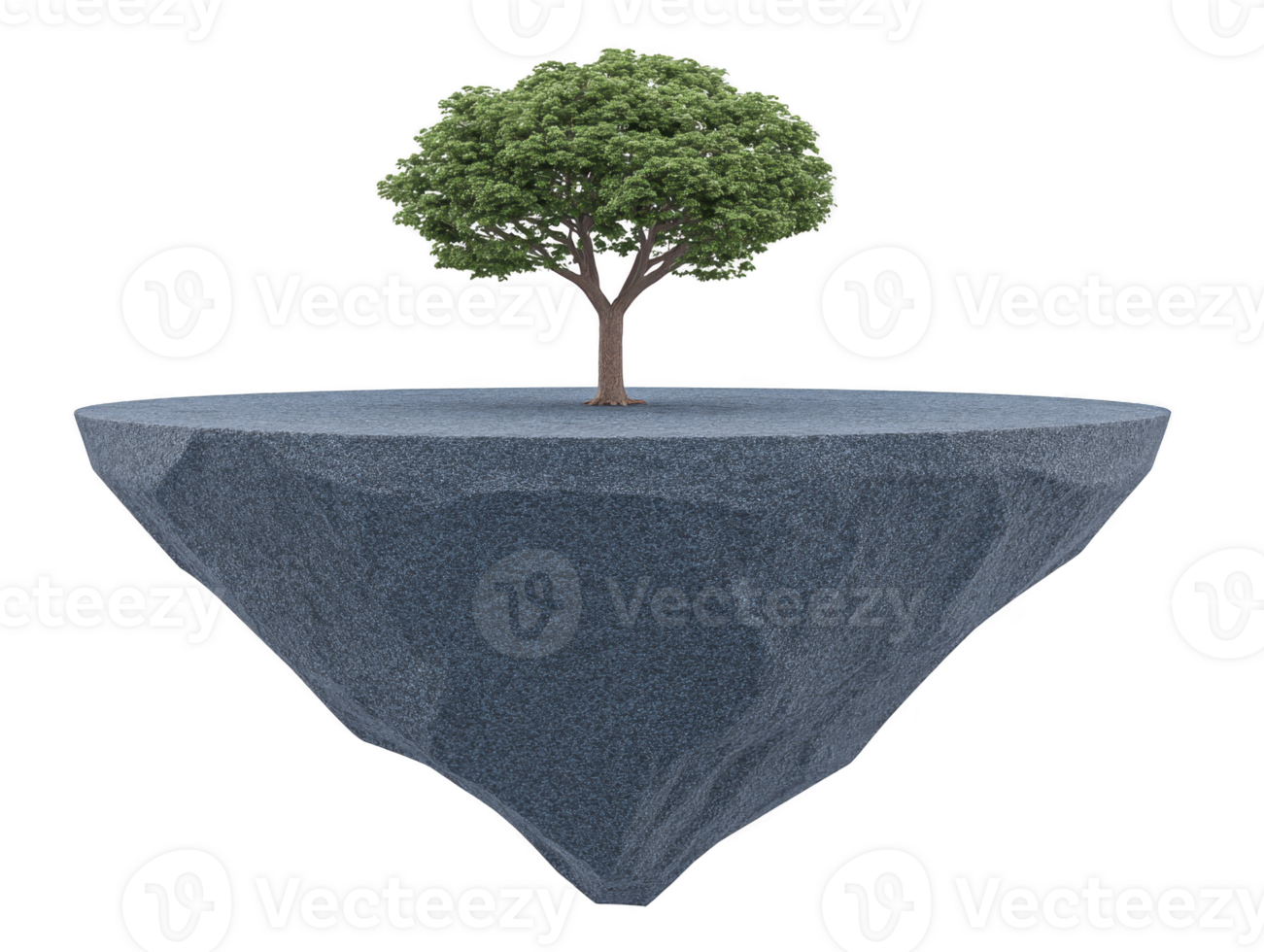 Floating island with single green tree, isolated on transparency background, evokes sense of fantasy and tranquility, perfect for imaginative or environmental concepts Pro PNG