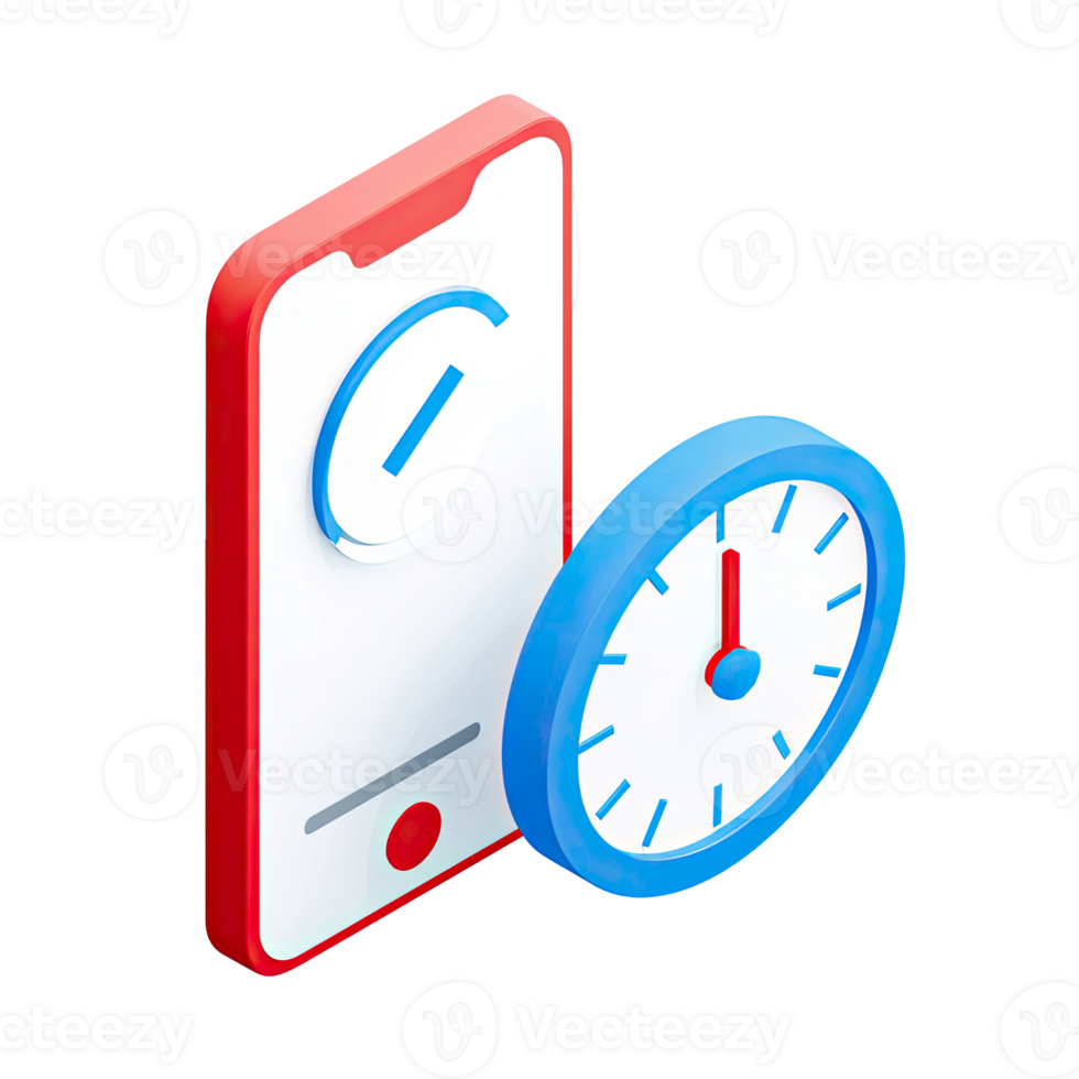 3D smartphone with checkmark and clock icon representing task completion and time management isolated on transparent background Pro PNG