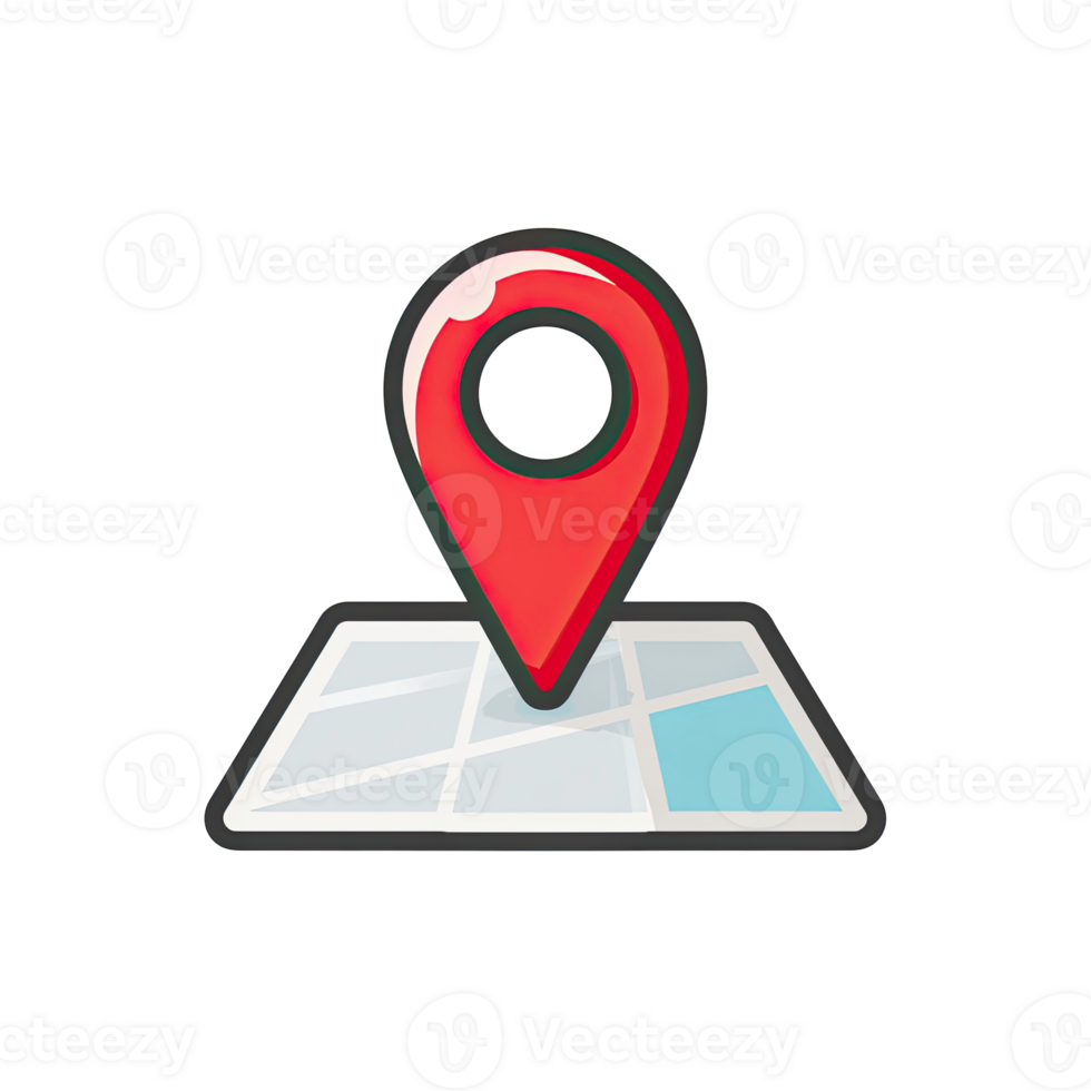 Red location pin marker on a minimal map grid indicating a specific point of interest isolated on transparent background Pro PNG