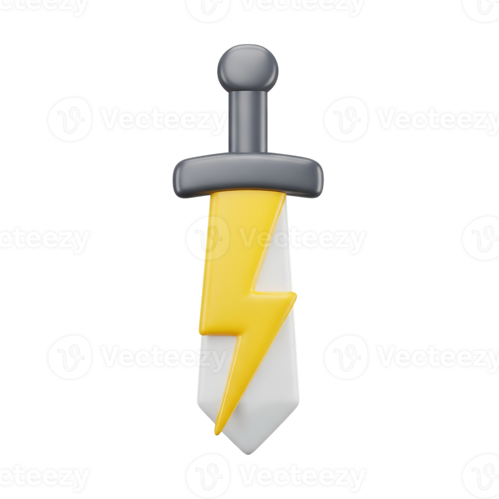 Stylized 3d rendering of a sword with a lightning bolt symbol on a transparent background Pro PNG