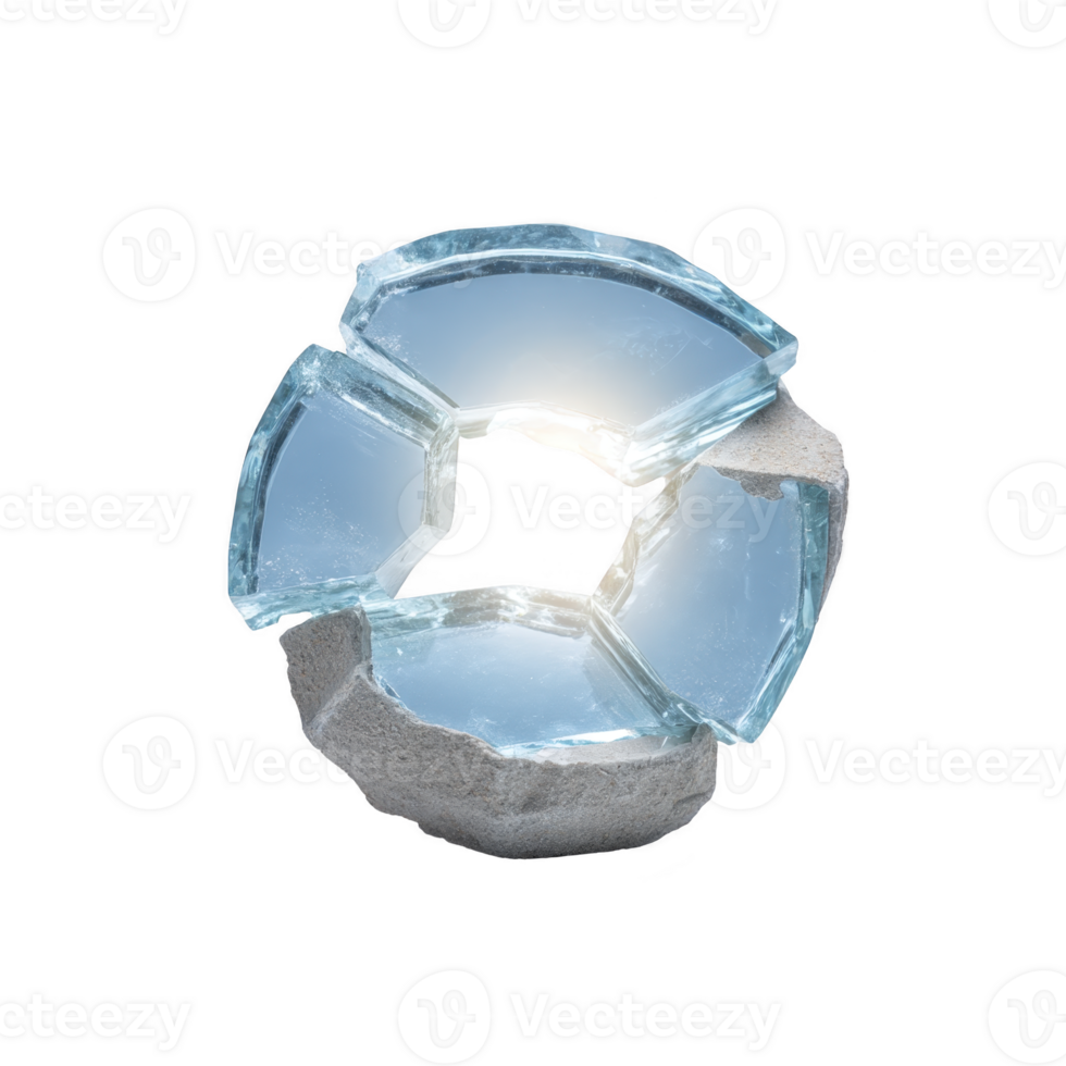 Broken glass circle with jagged edges and reflective surface, isolated on transparency background, symbolizing fragility, danger, and destruction, with dramatic and intense mood Pro PNG