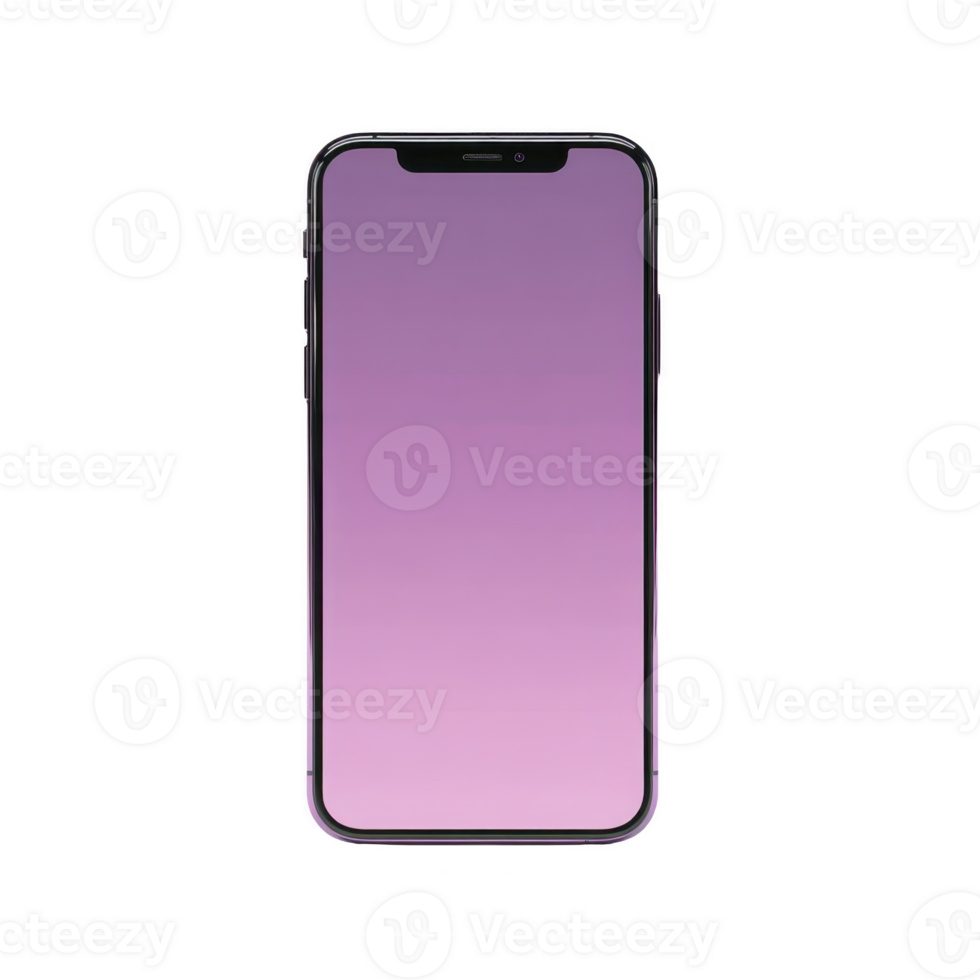 Smartphone with blank purple gradient screen, modern slim design, isolated on transparent background, digital device for technology, communication, and mobile app display, minimal and clean style Pro PNG