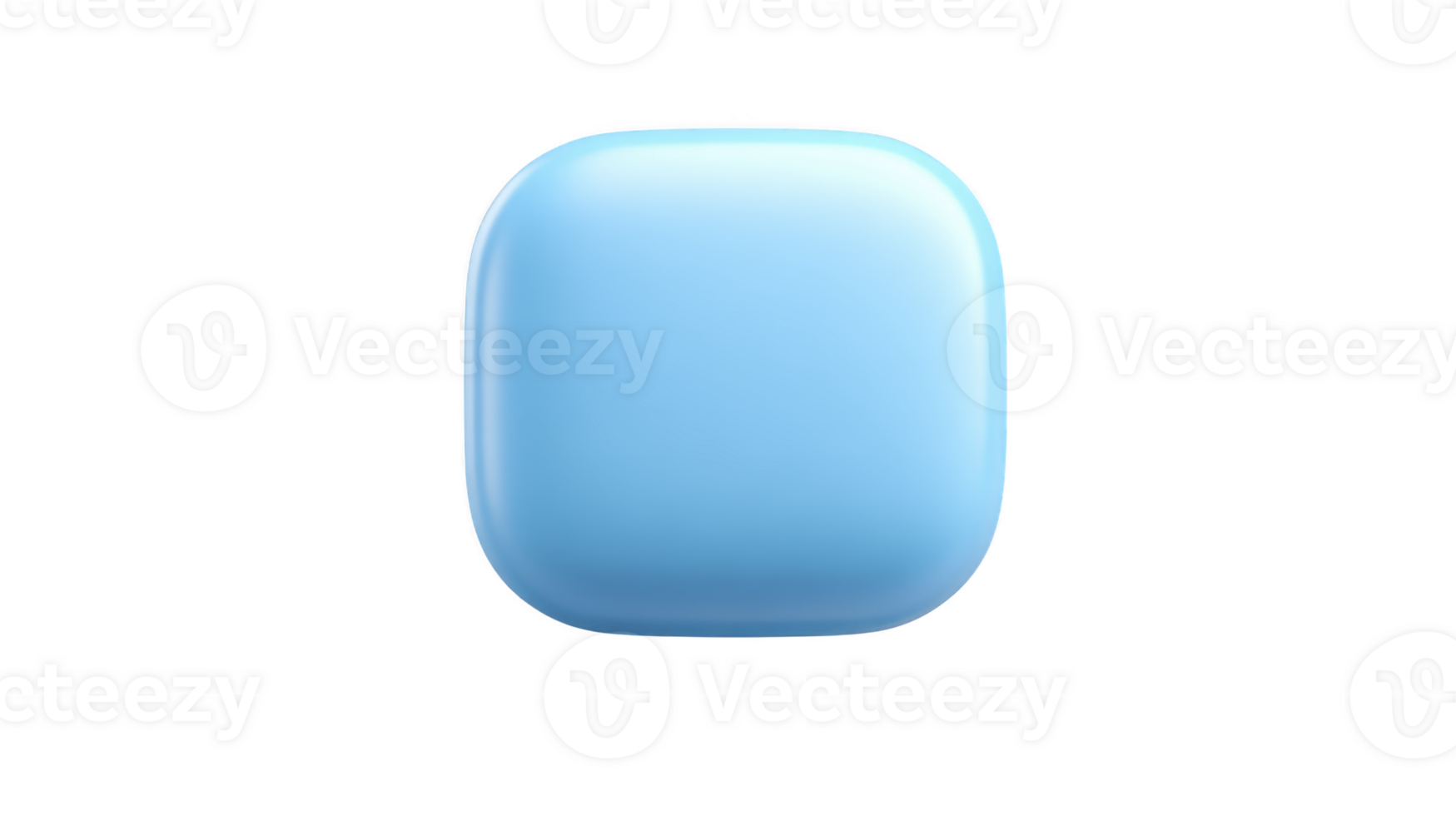 Blue square icon 3D rounded shape glossy surface isolated on transparent background modern minimal design soft color digital element cheerful and clean style Pro PNG