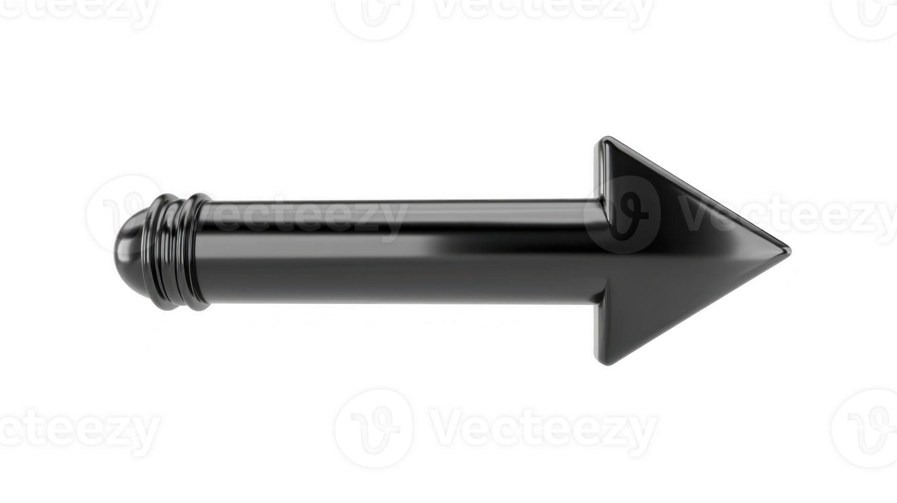 Glossy black arrow pointing right metallic finish isolated on transparent background modern design 3D rendering symbolizing direction navigation or progress sleek and minimalistic style Pro PNG