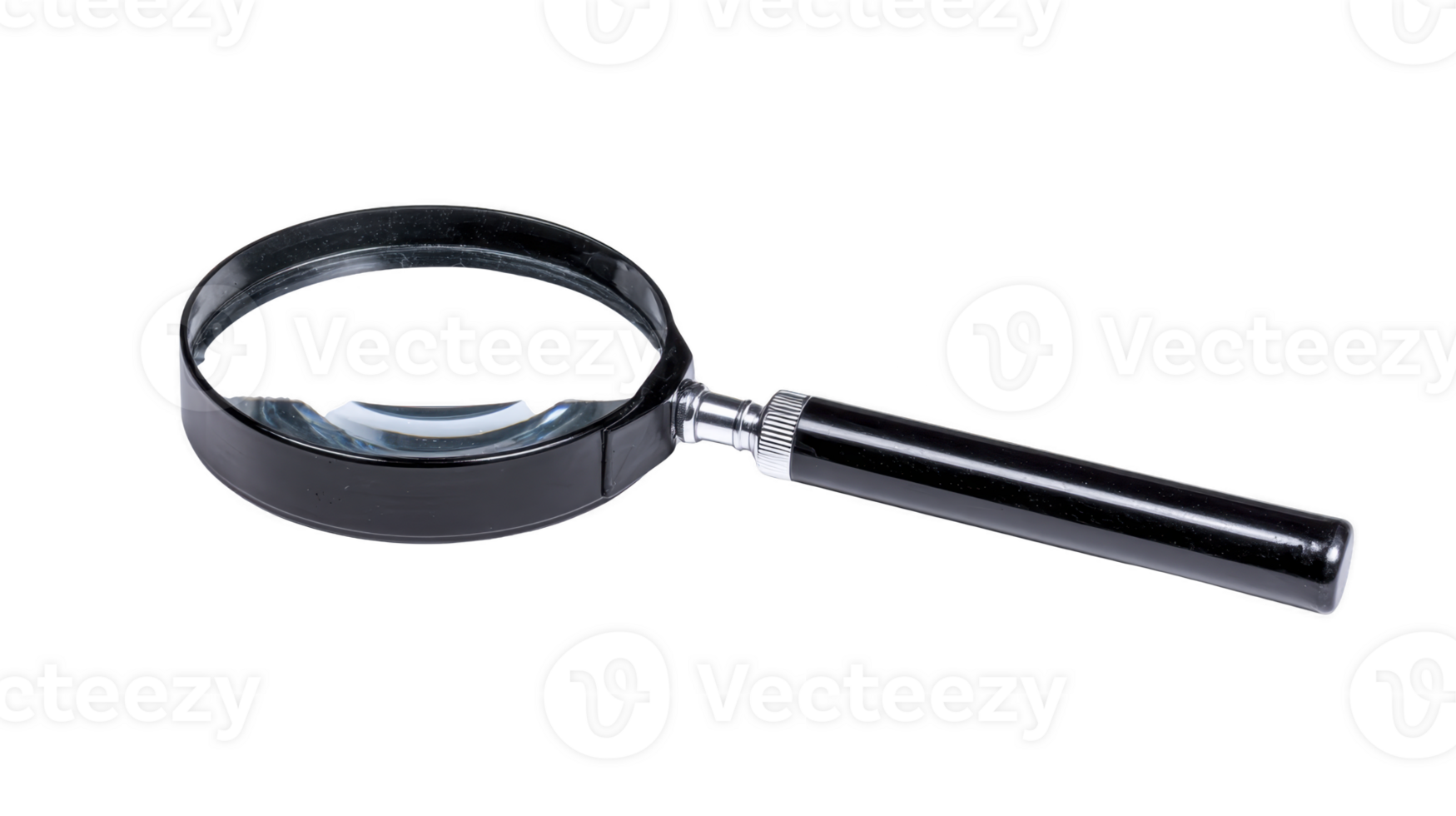 Magnifying glass black handle isolated on transparency background optical tool for close up inspection used for reading science and investigation simple and practical design Pro PNG