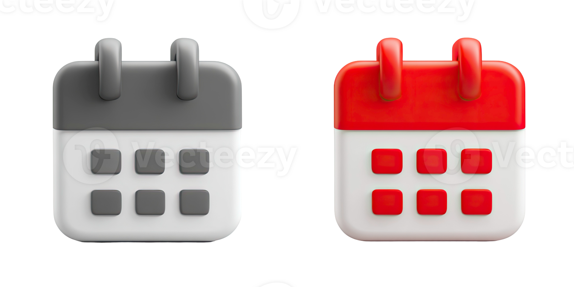 Two calendar icons in 3D rendering with gray and red color options isolated on transparent background Pro PNG