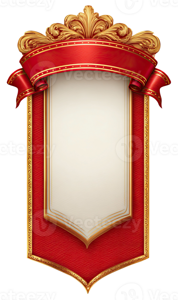 Ornate vertical red and gold banner frame with blank shield for text isolated on transparent background Pro PNG