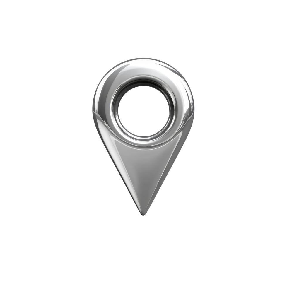 Silver 3D location pin icon, a glossy metallic marker for GPS navigation and digital map applications isolated on transparent background Free PNG