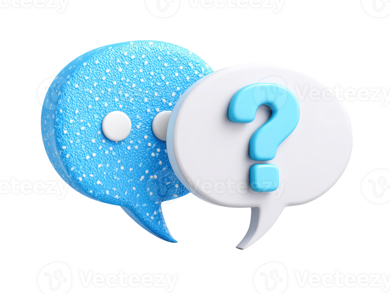 Two 3D speech bubbles with a question mark and a message symbol isolated on transparent background Pro PNG
