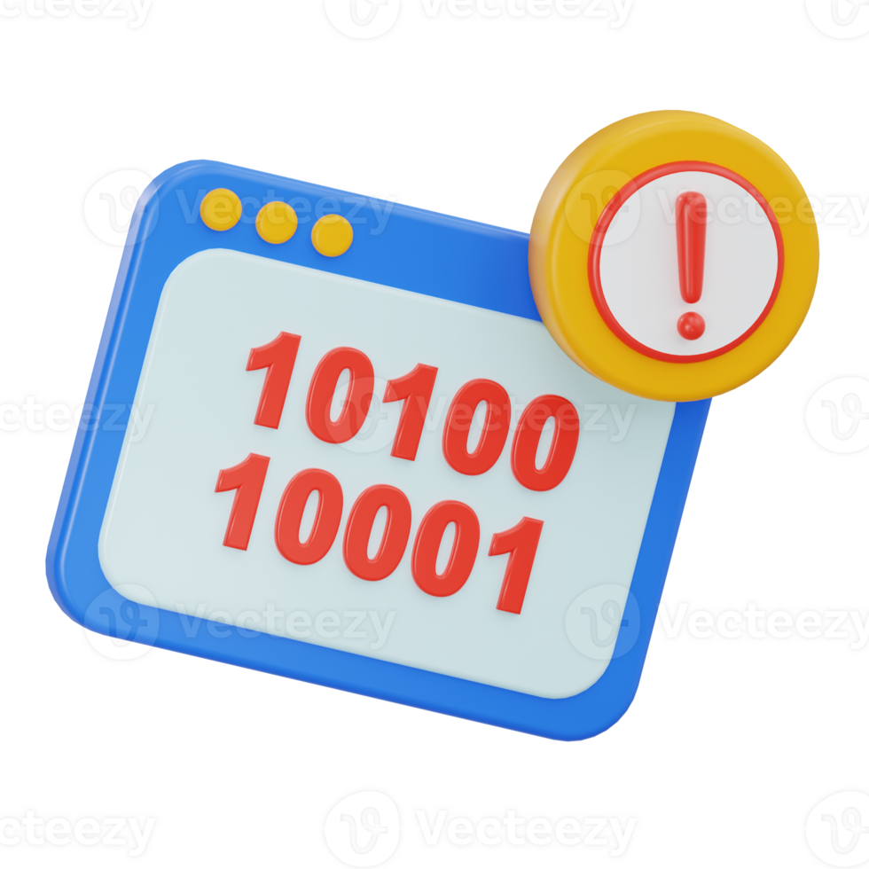 3D Binary Code Error Icon with Exclamation Mark Pro PNG